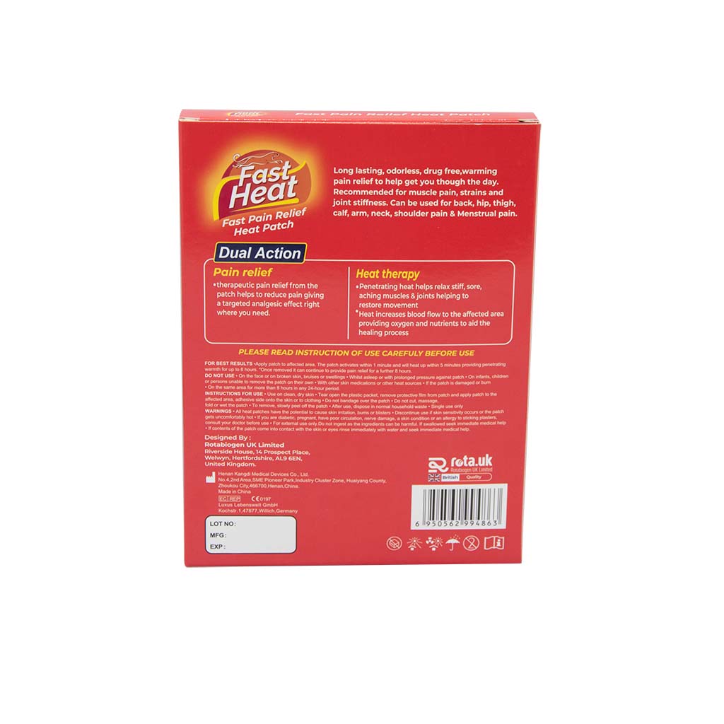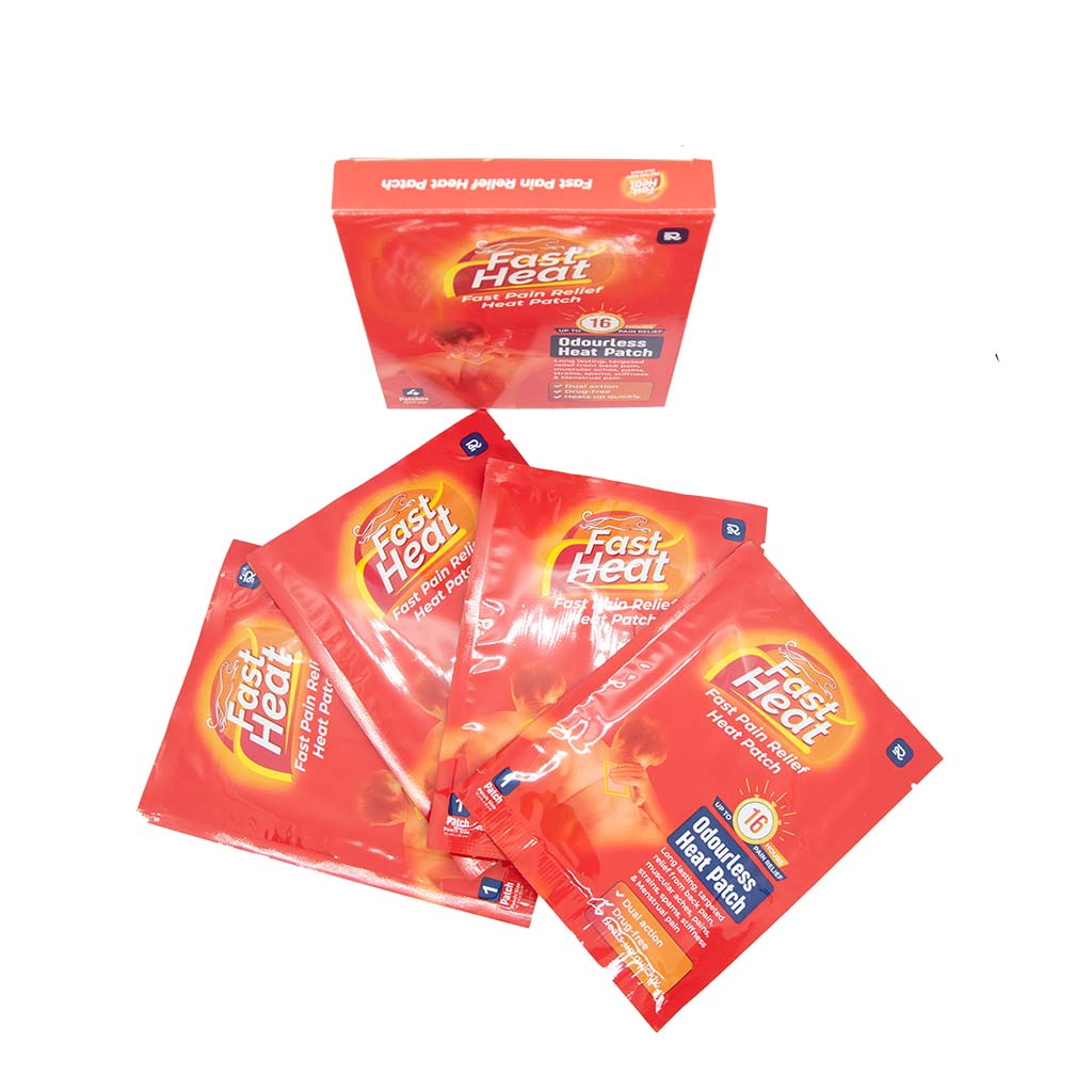 "Fast Heat Patch provides quick, long-lasting relief from muscle and back pain, stiffness, and cramps.
