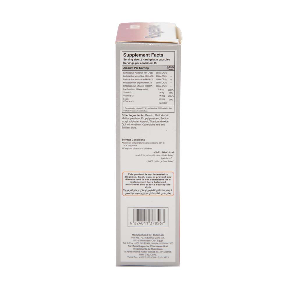 | Iron Floragestive is a dietary supplement that combines highly absorbable iron, essential vitamins, and probiotics to support digestive health, red blood cell and hemoglobin formation, and reduce fatigue and exhaustion. Ingredients 5 types of probiotics Iron Vitamin C Vitamin B12 Folic acid Contraindications Conditions with excess iron (such as hemochromatosis) Severe gastrointestinal diseases or acute intestinal obstruction Use with caution in patients with chronic kidney or liver disease Dosage Two capsules daily with food and a glass of water. |