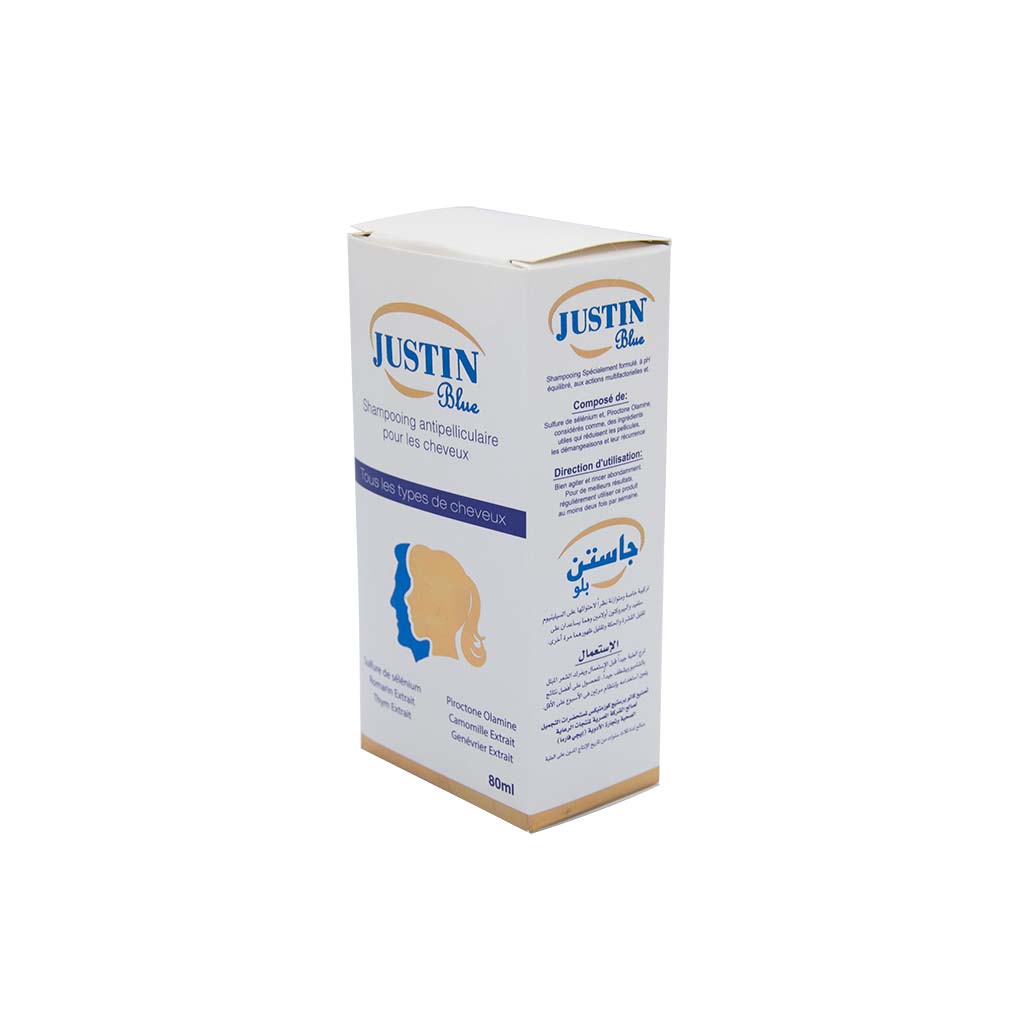 "Justine Blue Anti-Dandruff Shampoo helps treat dandruff and eliminate the fungi that cause it while maintaining the hair’s softness and moisture.