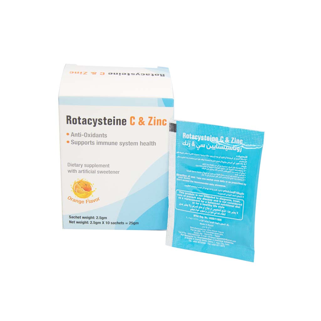 "Rotacystein C & Zinc is an advanced dietary supplement that combines powerful antioxidants N-Acetyl L-Cysteine, Vitamin C, and Zinc to support the immune system, promote cellular health, and enhance liver function.