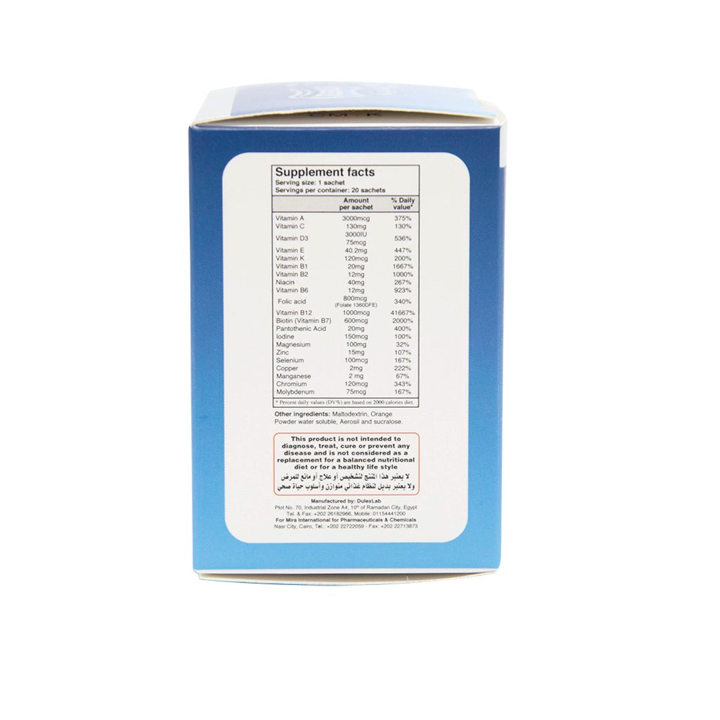 It comes in an orange-flavored powder form that dissolves easily in water.